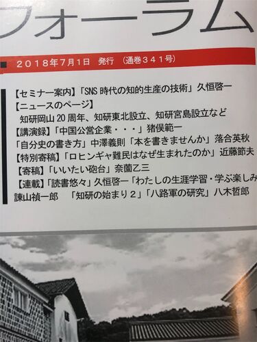 「知研フォーラム」341号が届く。 内容はかなり充実している。 ------------------ 15時:グランドパレスで長島さんと懇談。 15時半:学長に長島さんを紹介。 16時:インターゼミ。 学長講話 ・日比谷の松本楼。孫文、梅屋庄吉、商震将軍…